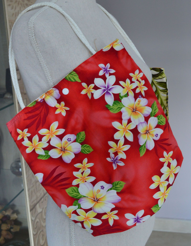 Petit sac tissu floral polynésien, anse cordelette